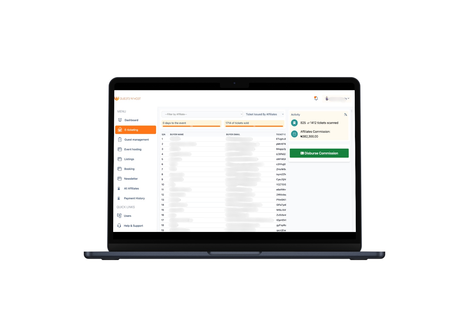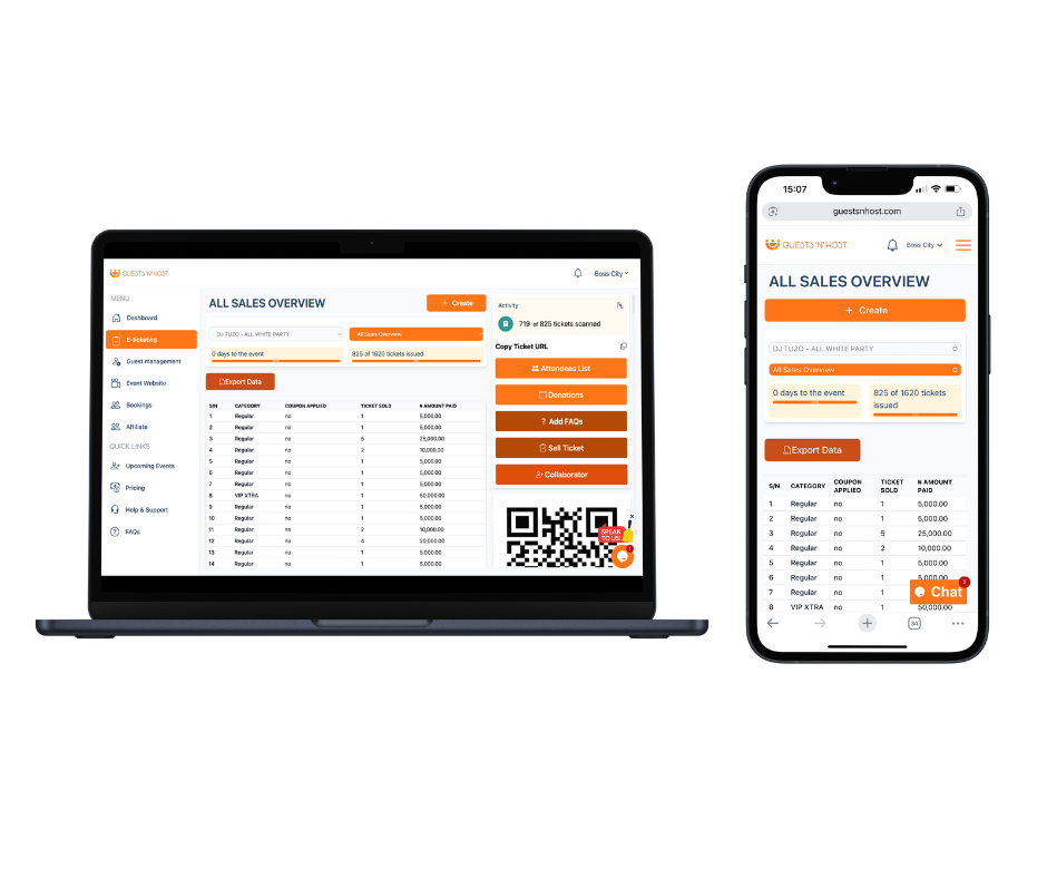 Sell tickets online and offline with a check-in system to validate tickets. GuestsnHost's e-ticketing platform provides real-time tracking, secure sales, and an easy-to-use interface.